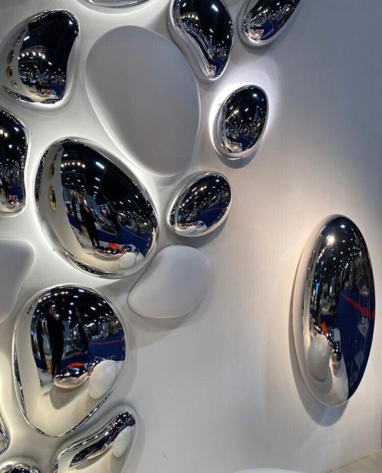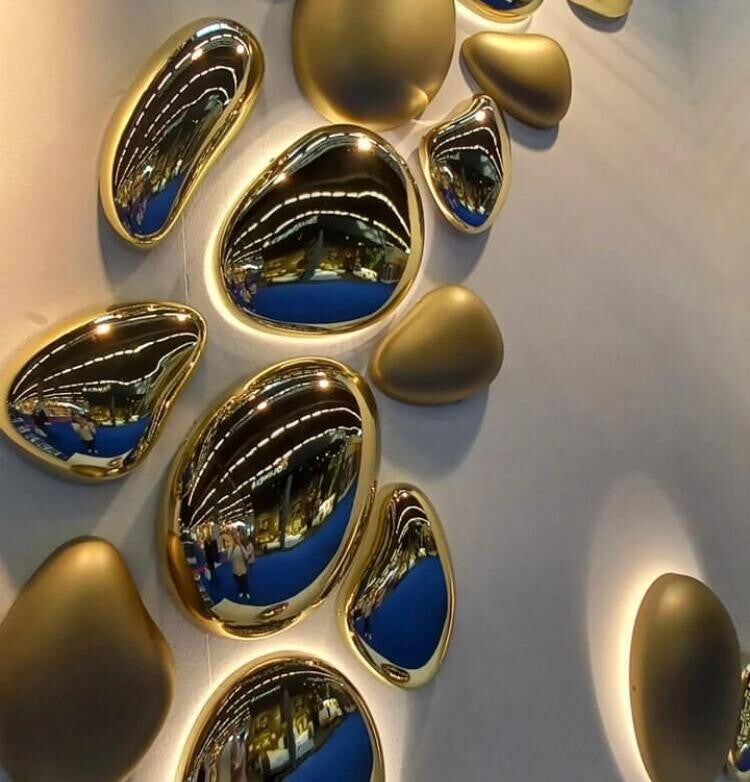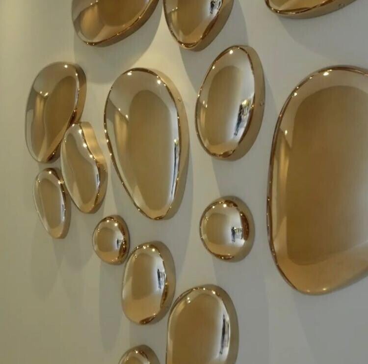 Éléments de miroir chromés, thermoformés en matière plastique, antichocs, à usage décoratif, de différentes formes.