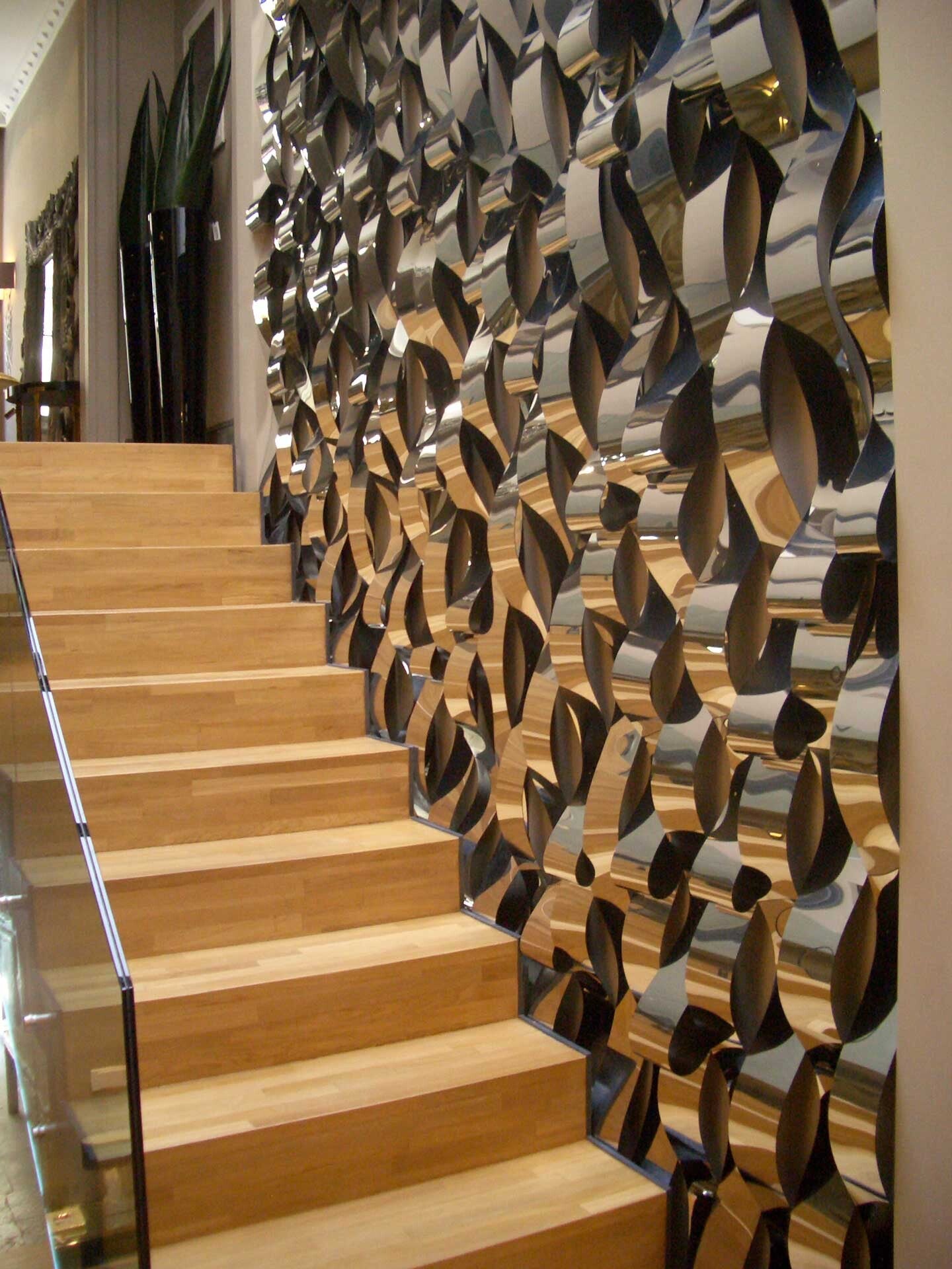 Éléments de miroir chromés en matière plastique, à plier et façonner à votre guise. Disponible en kit de 8 bandes de l 12 cm x H 200 cm