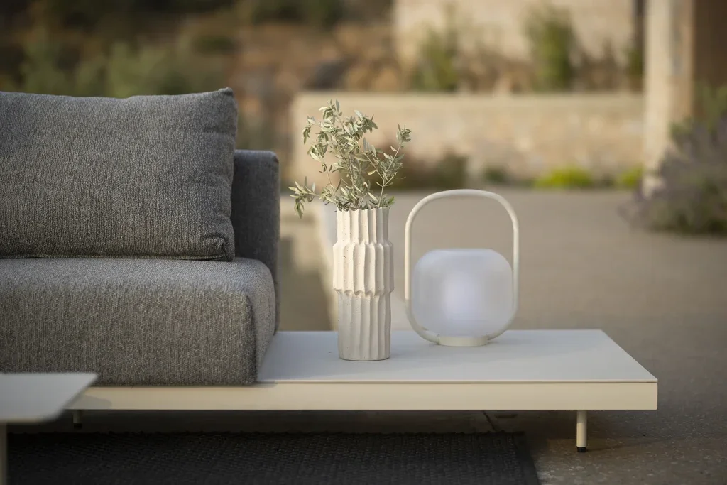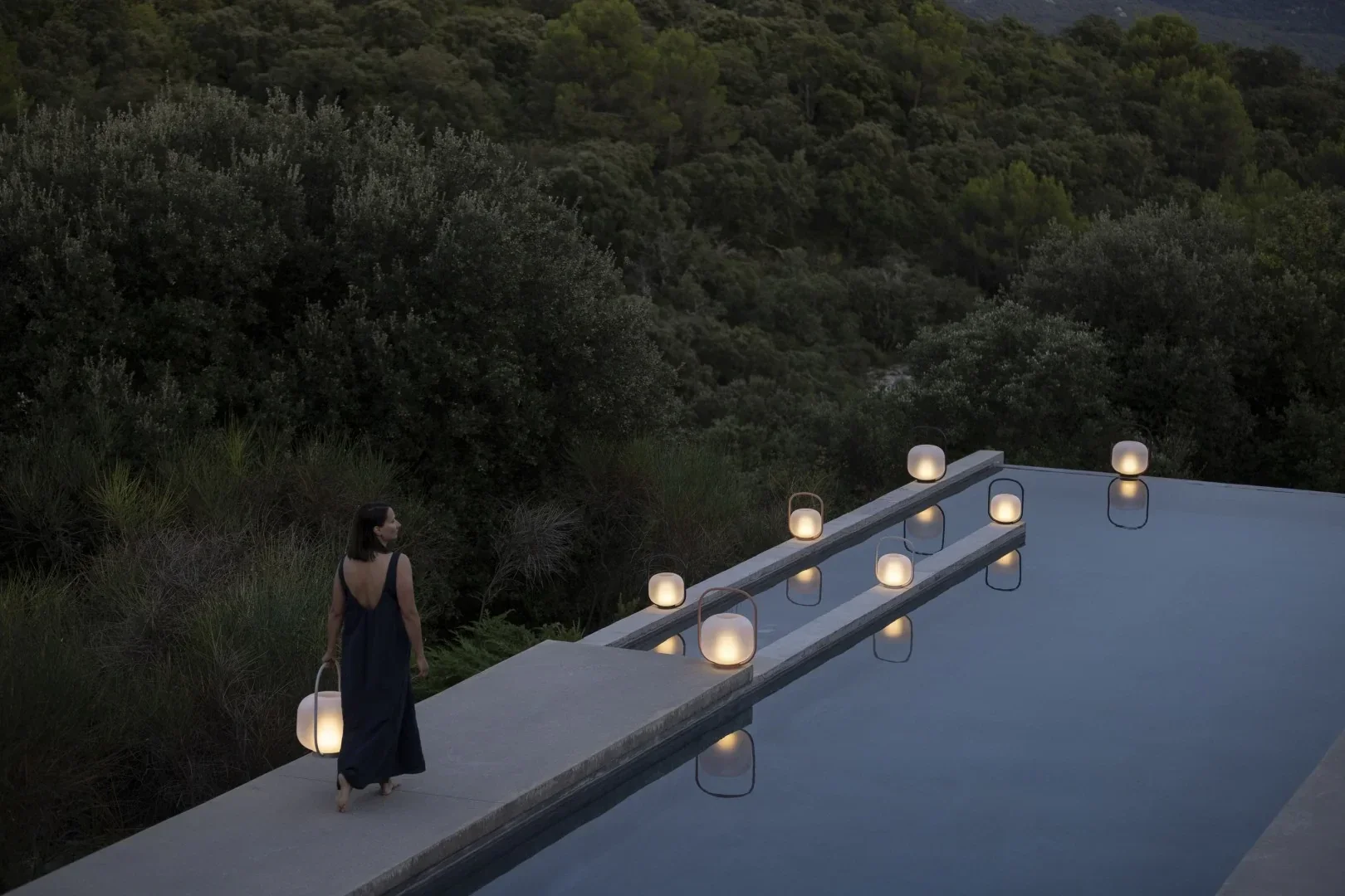 la lampe LED d'extérieur OTUS allie un design traditionnel avec un verre soufflé à la main et un design contemporain avec un cadre en acier inoxydable enduit de poudre, disponible en 13 finitions de couleurs différentes et en deux tailles. Elégante et pratique, la lampe peut être facilement transportée grâce à une poignée pratique.