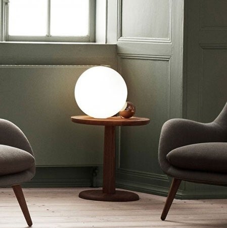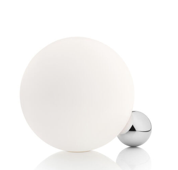 Lampe de table composée d'une sphère en aluminium usinée dans la masse puis dorée dans un bain d'or 24K. Diffuseur opalin en verre soufflé. Lampe LED avec variateur sur le câble d'alimentation. Design By Michael Anastassiades