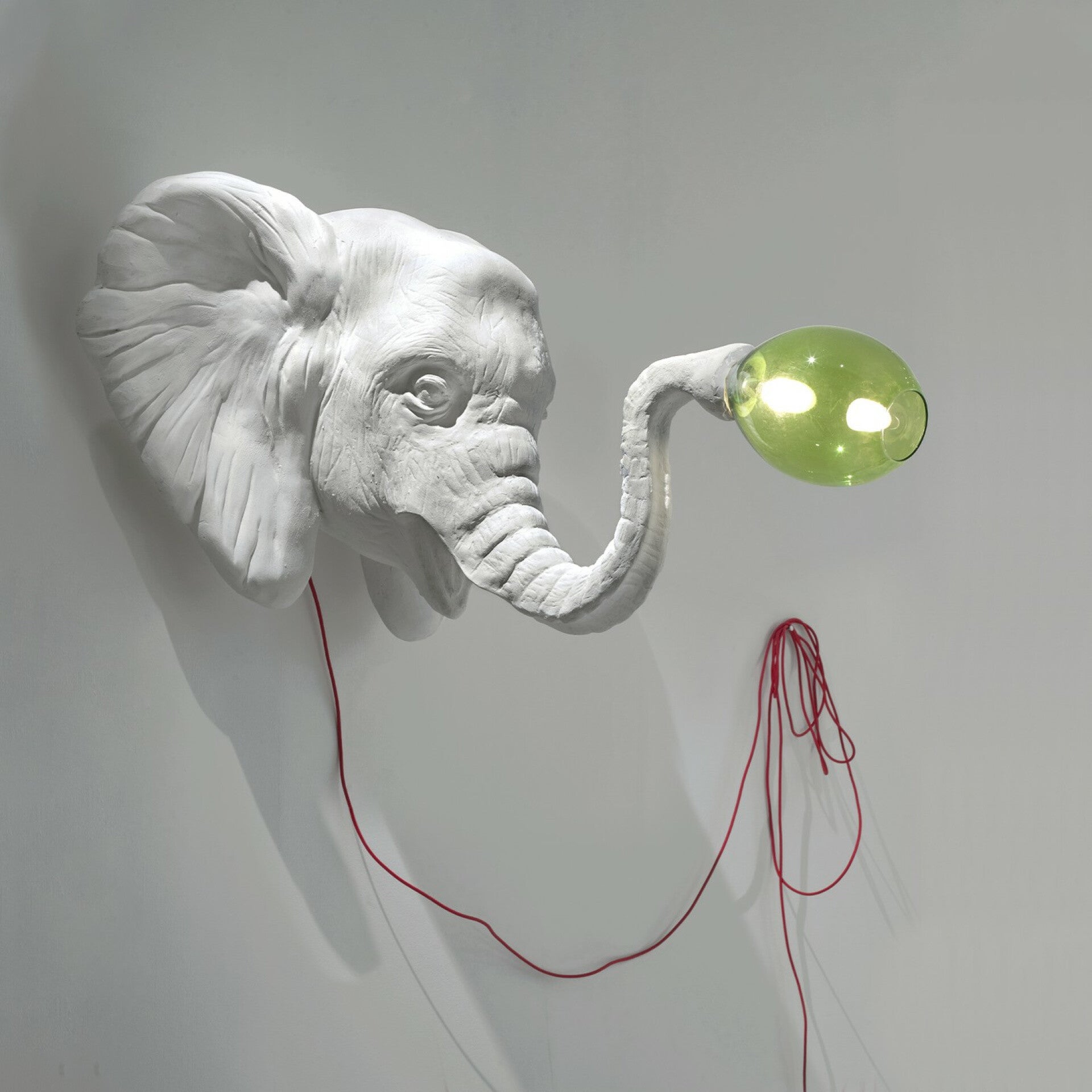 La nature et ses créatures, plongées dans une atmosphère à la fois rêveuse et ludique, sont la source d'inspiration de cette lampe unique en son genre. Tel une bulle sur le point de s'envoler, un bulbe lumineux émerge de la trompe d'un éléphant, recréant ainsi une véritable histoire féerique dans la pièce. Disponible en édition limitée, avec certificat et numéro de série.