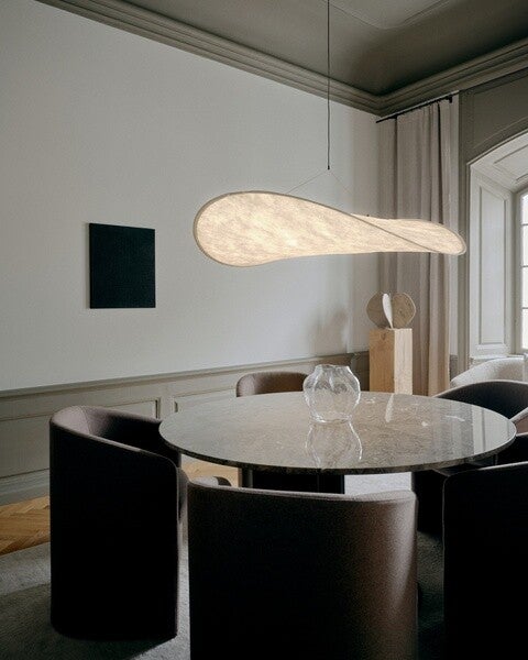 Dans leur série Tense for New Works, les designers Panter & Tourron explorent les tensions des matières et donnent vie à des formes fluides et aériennes. L'écran en forme de nuage de rêve de l'applique murale Tense fournit une lumière douce et crée une sensation sculpturale qui convient à un large éventail d'environnements architecturaux. Avec une douceur comme le textile et une expression rappelant le papier craquelé, le diffuseur texturé en Tyvek contribue à la tactilité, tout en offrant une résistance, des propriétés ignifuges de première classe et une recyclabilité à 100 %. Lorsque la lumière est allumée, la texture bouclée de la matière est mise en valeur dans un délicat échange entre ombre et lumière. L'applique murale Tense est livrée avec une source lumineuse LED intégrée et un interrupteur marche-arrêt discret à la base.