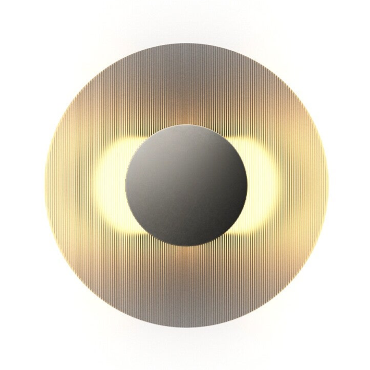 Applique murale entièrement en finition Dark Brass, dotée d'un diffuseur en verre finition Dark Glass. Offre un éclairage doux et uniforme. Possibilité de régler la luminosité de manière fluide grâce à la technologie DALI.